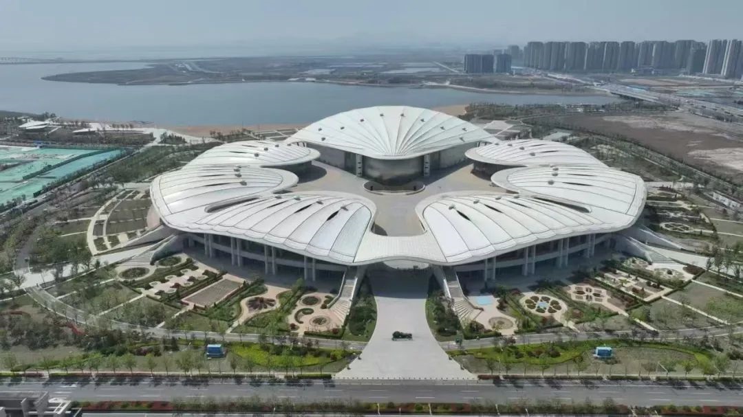 A Qingdao SCO demonstrációs zónában található, a csodálatos Sco Pearl Expo központ tartós benyomást hagy a Ruyi -tó mentén. A fentről nézve körkörös "egység"-ihlette kialakítását hét összekapcsolt, héjszerű fehér tető sugárirányban elrendezi. Ritmikus, hullámzó hullámokat hoznak létre, amelyek elegánsan emelkednek az ég felé.
