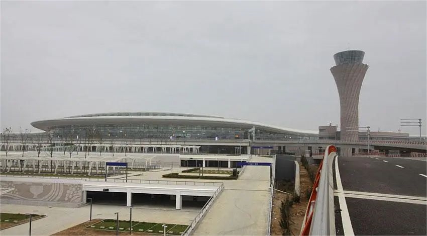 Egy fő, 4E-szintű nemzetközi átjáró 30 km-re a belvárostól. A II. Fázisú bővítés magában foglalja a repülőtéri létesítményeket, a légiforgalmi irányítást, az üzemanyag -ellátást és a Shandong Airlines & China Eastern Airlines alapjait.