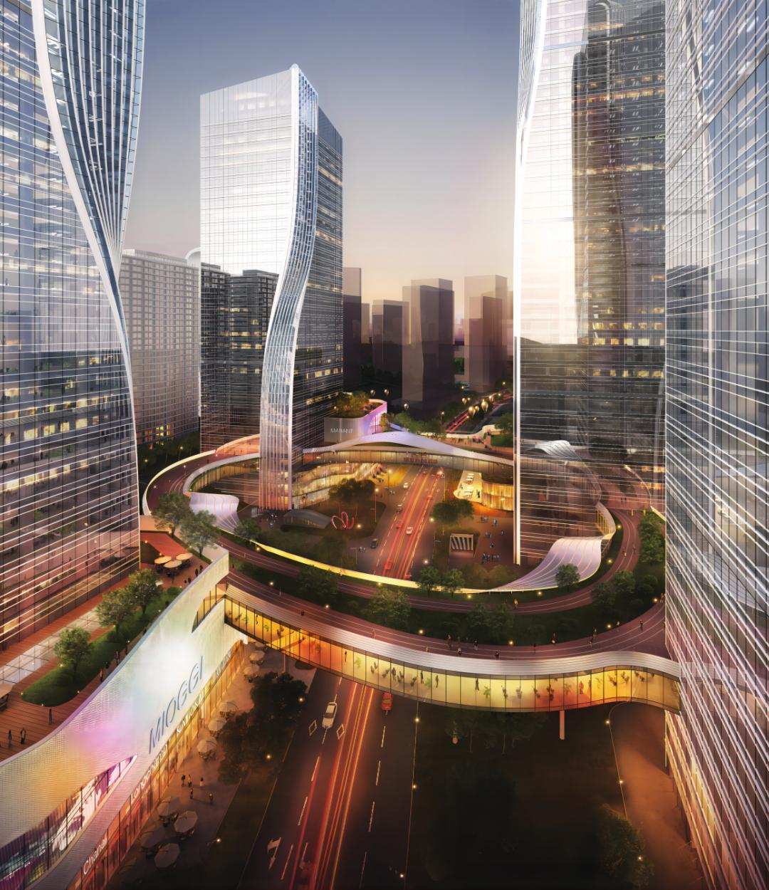 Ez az ikertorony komplexum 57 hektárnyi, teljes alapterületen 220 000 négyzetméter, irodákat, szállodákat, kiskereskedelmet, étkezést és szórakoztatást integrálva. Üvegfüggönyfalai, több mint 7200 méter szinkronizált fénycsíkkal díszítve, dinamikus mintákat hoznak létre közel 11 000 négyzetméteren keresztül, és hatékony vizuális hatást eredményeznek.