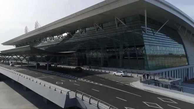 A "szárnyaló, a jövő megteremtése" megtestesítésével "a" repülőtéri szárnyak, a felszállás "szimbolizálása. Megjelenítő függönyfala 44 típusú egyedi méretű üvegt használ (összesen 665 nm), megőrizve az átláthatóságot, miközben ragyogó képeket jelenít meg, javítva a tér művészetét.