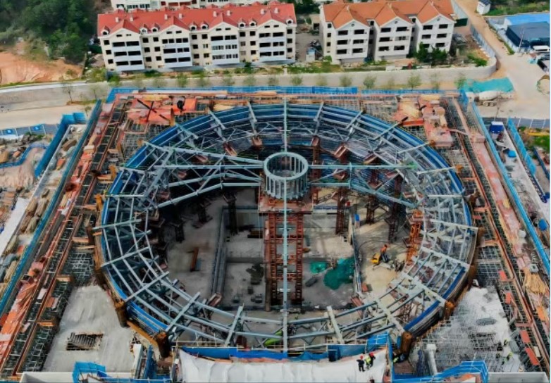 A színház fő teherhordó szerkezeteként a kör alakú rácsos gerenda beépítése a legfontosabb feladat ebben a konstrukcióban. Ez a rácsos fesztáv és nagy súlyú, a folyamat során számos kihívás leküzdésével járt, mint például a nagy magasságban végzett műveletek és a precíz igazítás, nagy emelőberendezéseket alkalmaztak a milliméteres pozicionálási pontosság biztosítására. Ez a pontosság stabil alátámasztást biztosított a színház tetőszerkezetének.