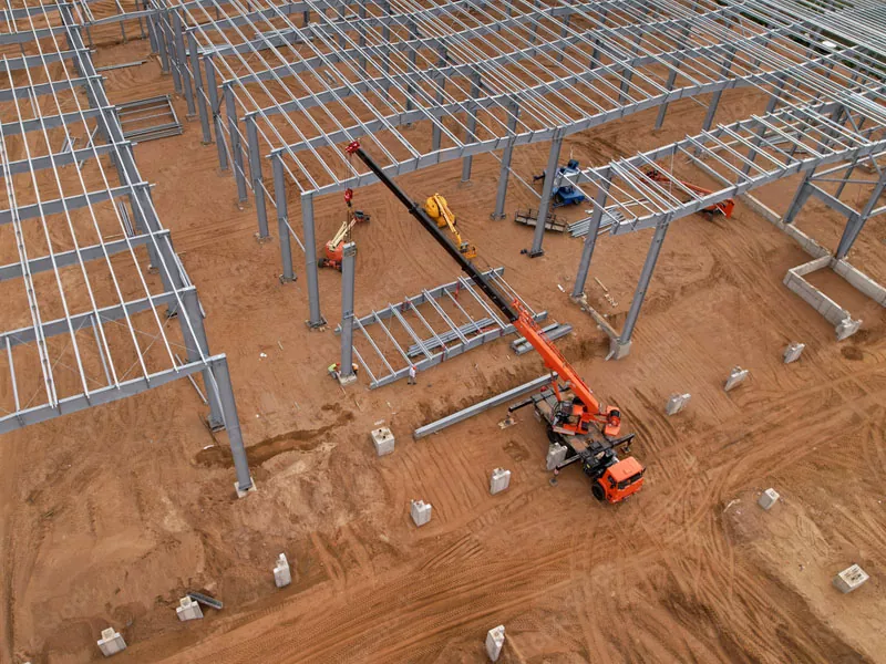 Az acél alkatrészeket, beleértve a gerendákat, oszlopokat, nadrágtartót és a tetőhátot, egy gyári környezetben előregyárták. Kiváló minőségű acélt használnak, és az alkatrészeket a pontos specifikációkhoz állítják elő, hogy azok pontosan és biztonságosan illeszkedjenek a telepítés során. Ez az ellenőrzött környezet lehetővé teszi a szigorú minőség -ellenőrzési intézkedéseket, biztosítva az alkatrészek tartósságát és megbízhatóságát.