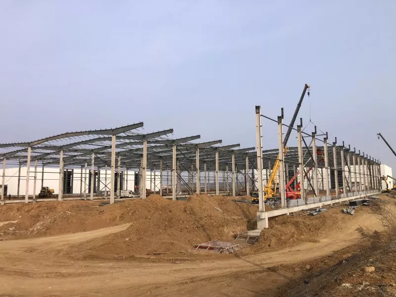 Először is, az egyszintes acél raktár épületét a nagy span és a nagy tér kialakítása jellemzi. A 12 és 40 méter közötti tartományban és a többszörösek összekapcsolásának képességével könnyen befogadhatja a különféle gyártási vezetékeket és a berendezések elrendezését. A raktár magassága meghatározott igények szerint is beállítható, több méter és tíz méter között, rugalmasságot biztosítva a különböző ipari termelési követelmények teljesítéséhez.